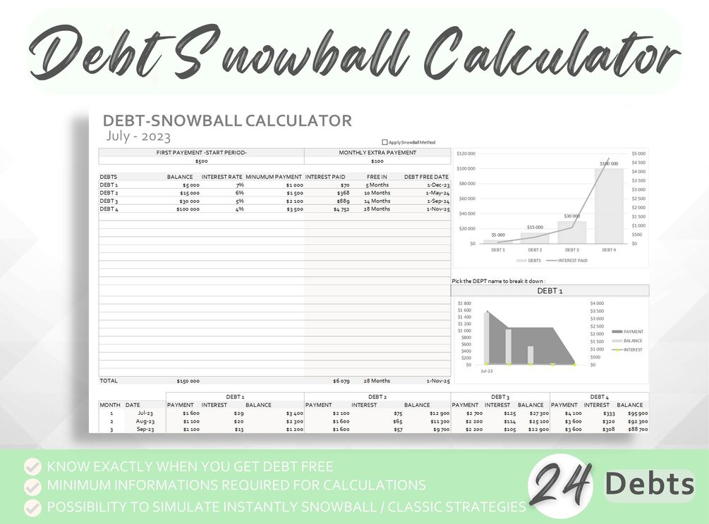 4- Debt SnowBall simulator: a simple tool applying the snowball strategy to get debt free quickly. A checkbox to apply or not the snowball strategy is available in the worksheet.