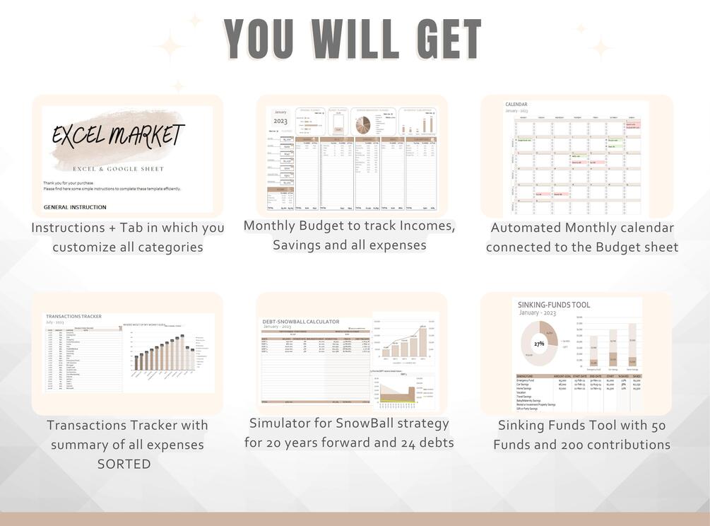 Brown Monthly Budget, Calendar, Microsoft Excel, Transactions Tracker, Budget Planner, Savings, Budget Tracker, Debt Snowball
