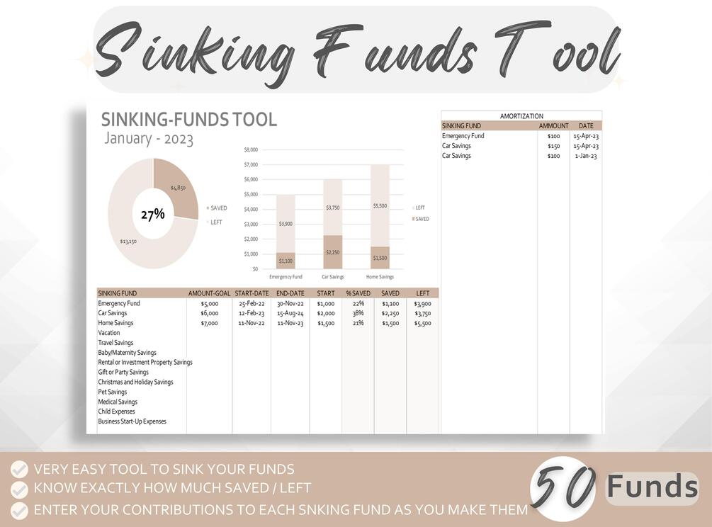 5- Sinking Funds tool: allowing in very simple steps to make contributions and see your progress in sinking. A large range of categories is included.
